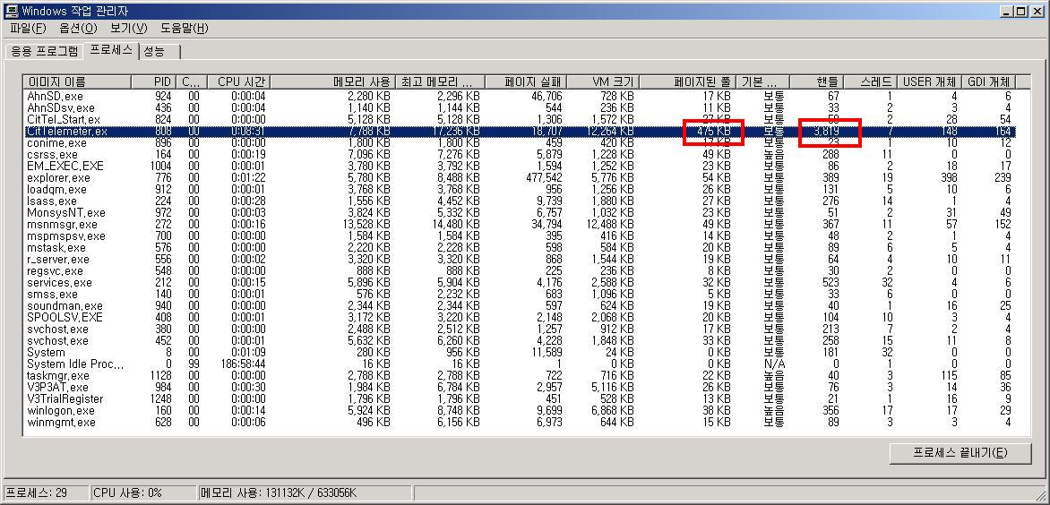 (여기서 말하는 "핸들"은 Ctrl+Alt+Delete를 누르면 나오는 작업관리자에서