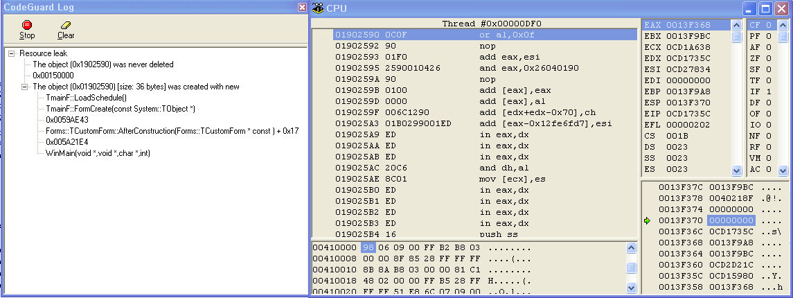 여기서...0x1902590 이 생성되어... 메모리 leak 가 난다는 것을 알려주고 있는 것 같습니다.