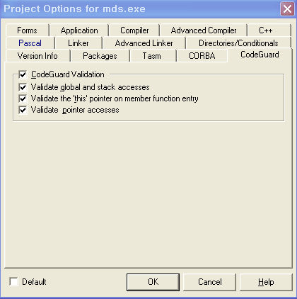 1) 첨부된 (cc.jpg 처럼 ) project option에서 codeguard를 체크했더니, 첨부된 bb.jpg 의 왼쪽 그림과 같은 화면이 팝업창이 나왔습니다..