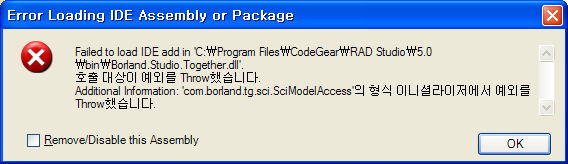 Failed to load IDE add in c:\program files\codegear\RAD Studio\5.0\bin\borland.studio.together.dll