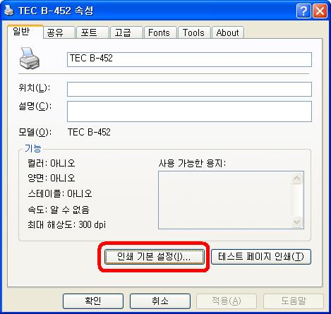 혹시 인쇄 기본 설정 창을 실행시킬 방법이 있을까요?