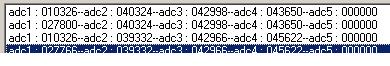str.sprintf("adc1 : %06ld--adc2 : %06ld--adc3 : %06ld--adc4 : %06ld--adc5 : %06ld",GasN2,GasO2,GasAr,DcVol,DcCur);