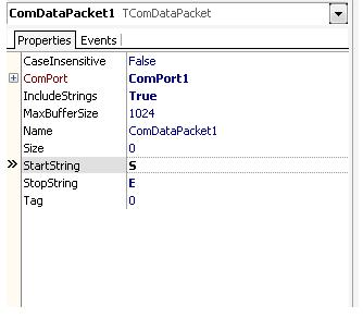 ComPort와 ComDataPacket을 연결시켜서 시작문자와 끝문자를 체크해서 데이터를 가져오려고 합니다.