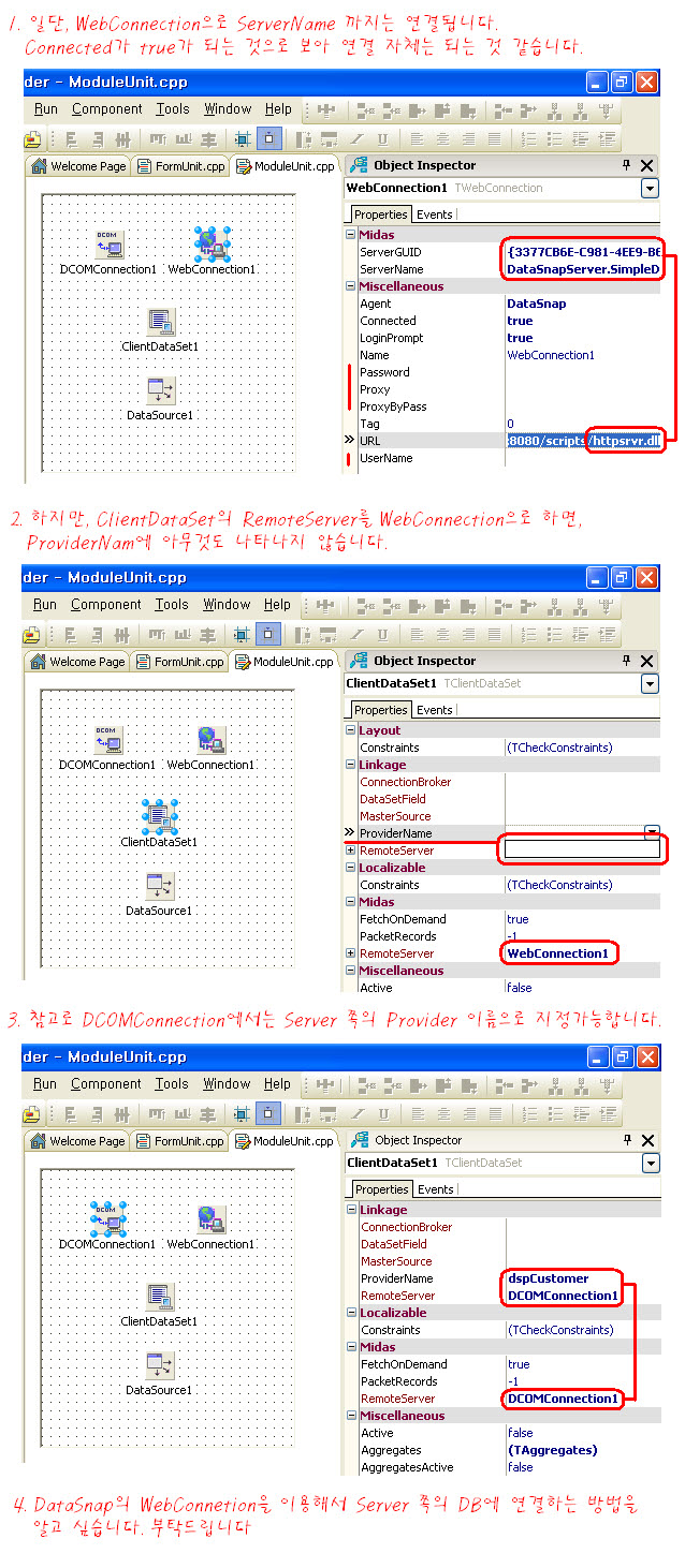 DataSnap에서 WebConnection을 이용해 보신분이 있으시면 도움을 주시면 고맙겠습니다. ㅠ.ㅠ