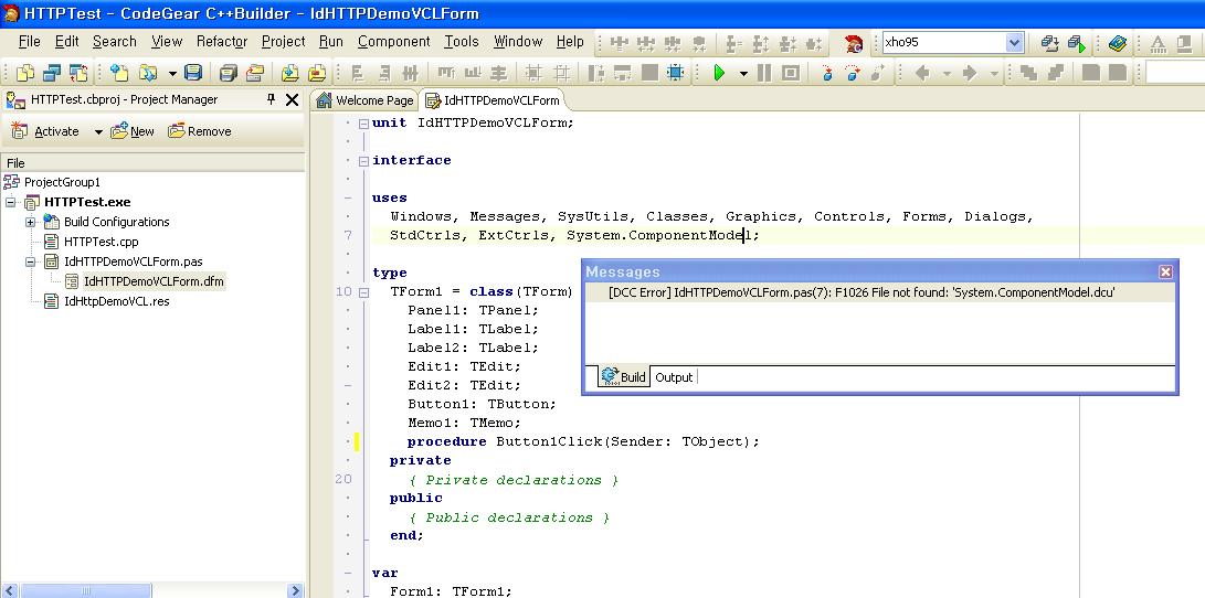 그런데, 말씀하신대로 해서 Indy 예제 맨 처음 것을 실행했더니, 첨부 파일과 같은 에러가 뜨더군요. 대충 감으로 보아하니 뭔가 C++ 에서의 헤더 파일 Include 하는 것과 유사한 것 같은데, "System.Component.dcu" 이런 파일을 어디선가 구해야 하는 것인지요? 검색해도 나오질 않던데요...
