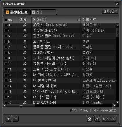 일반적으로 많이사용하는 모회사의 플레이리스트 켑춰입니다