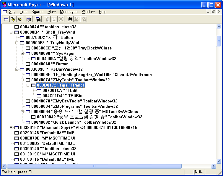 -> ToolBarWindow32 (도구모음 추가하면 여러개가 있을수 있음)