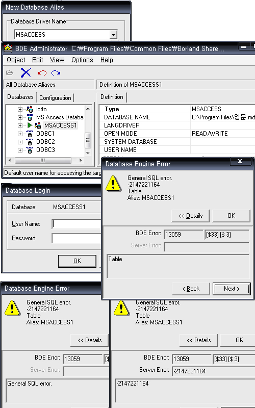 VB나 엑세스97, 2003 에서는 바로 열려서 사용했는데 빌더에서는 원래 이렇게 힘든가요?