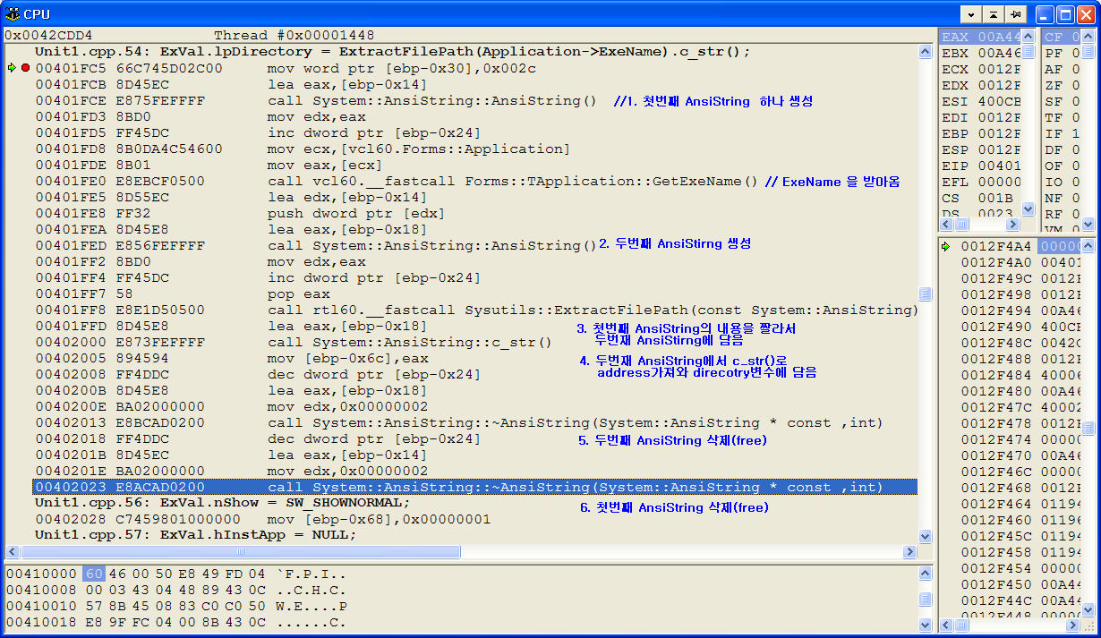 AnsiString이 free 될때는 내용을 완전히 삭제하는것이 아니라 RefCount를 하나 감소시킵니다.