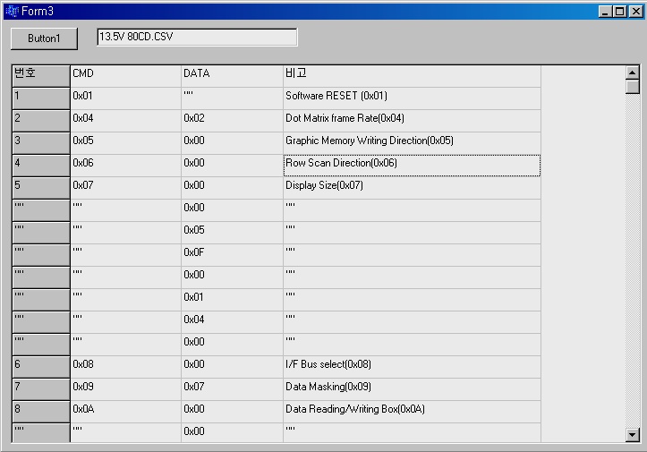 그래서 1,0x01,"",Software RESET (0x01) 를 -> 1,0x01,,Software RESET (0x01)