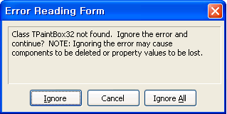 Class TPaintBox32 not found. Ignore the error and continue?