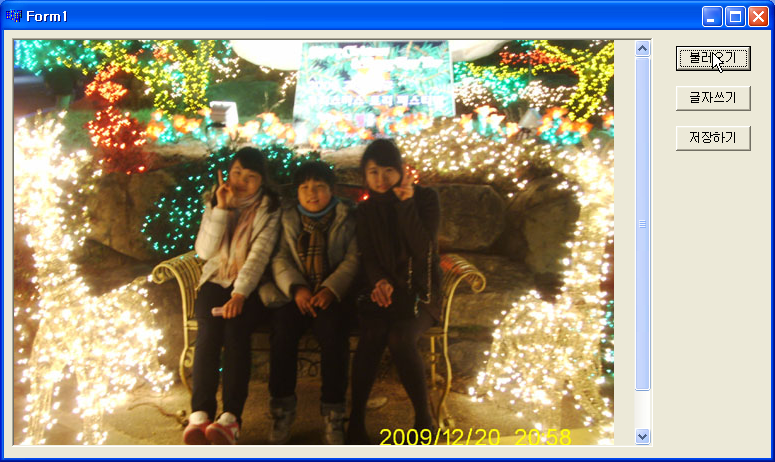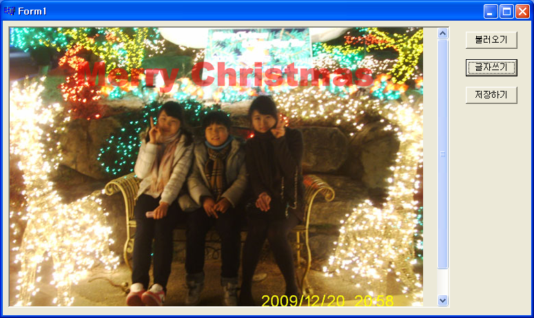 JPG에 글을 쓴다. JPG는 손실압축이지요... 글을 쓰려고 하면 바로 쓸 수 없습니다. 컴퓨터 내부에서 그림(GIF, JPG...)은 전부 BITMAP로 처리되지요... BITMAP로 바꾸어야 뭐 할 수 있다는... GIF, JPG는 사실 그림이기 보다는 그냥 DATA