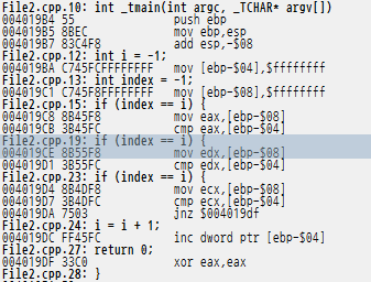 컴파일시에 해당 명령(if문)이후에 아무것도 하는게 없으니(메모리 사용) 그 문(exit)으로 넘어가지 않네요.
