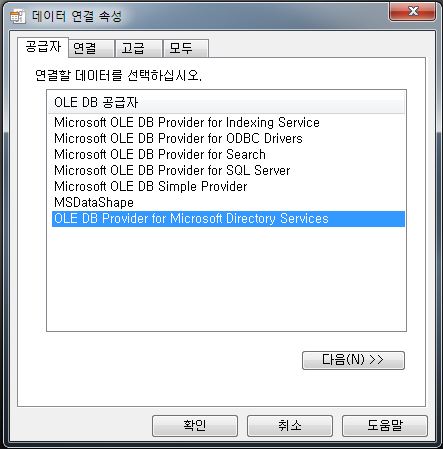 하지만 aaa.udl 파일을 생성 후 공급자 탱에서 Oracle Chient가 설치한 공급자가 보아질 않네요.