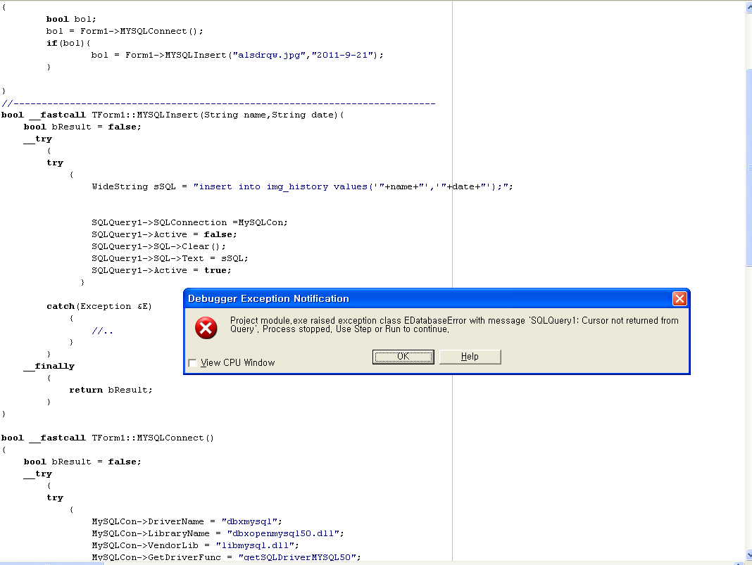 dbexpress사용하여서 mysql 5.0.x에 연결하였습니다