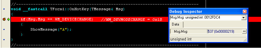MESSAGE_HANDLER(WM_DEVICECHANGE, TMessage, OnHotKey)