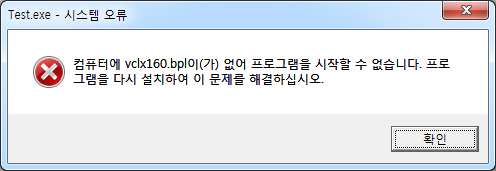 vclx160.bpl 이 없어 프로그램을 시작 할수 없다는 에러가 발생을 합니다.