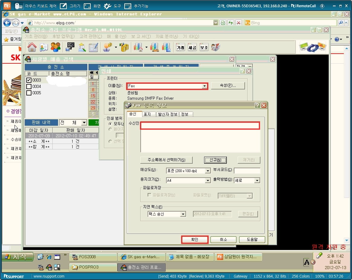 거기서 팩스도 보낼 수 있더군요 그런데 인쇄를 하면 프로그램 내에 아무 이상이 없지만
