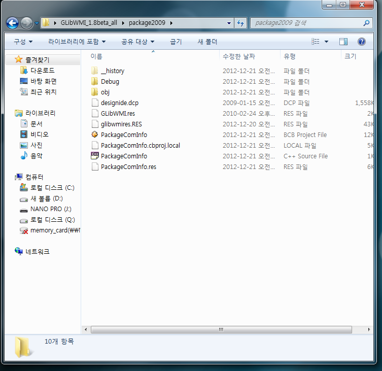 : 압축 풀고 그 하부에 package2007폴더를 새로 만들었습니다.