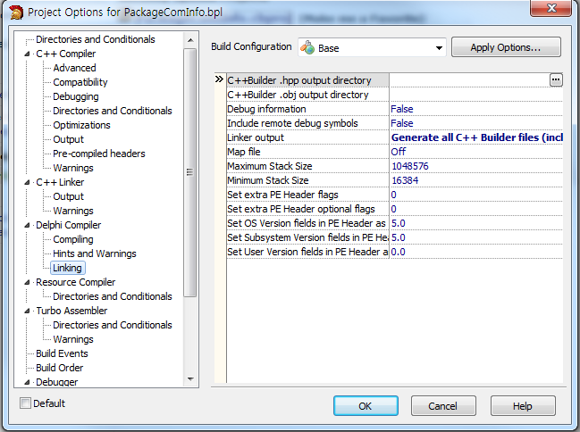 : 빌더에서도 사용가능하게끔 하기 위해 링커 옵션에서 Linker output>>Generate all C++Builder files를 체크합니다.