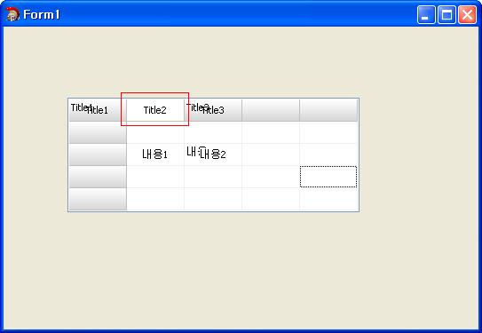 : : StringGrid1->Cells[1][2] = "내용1";