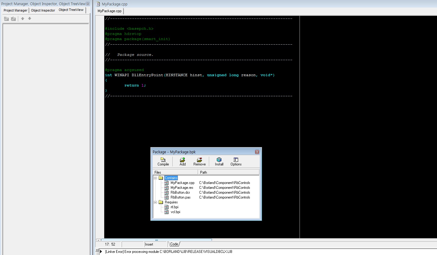 builder 6.0 MyPackage설치관련 Link에러입니다. 조치내용좀부탁드립니다.