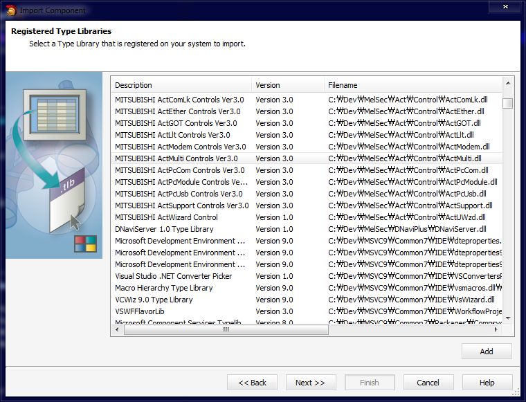 ActMulti.dll 선택 (MX Componet version 3.0) > Next 버튼 선택 (두번째 그림)