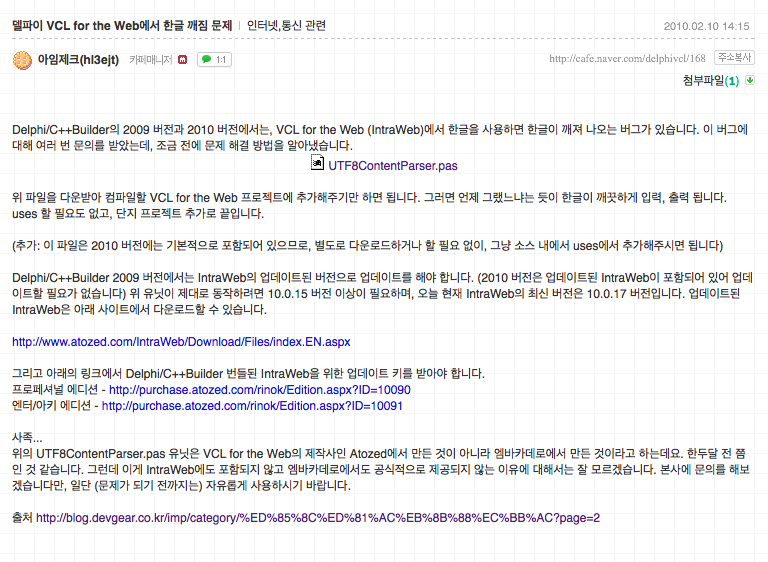 모두 델파이에서의 해결방법에 대한 내용들인데, 모두 UTF8ContentParser 에 대해 얘기를 합니다.
