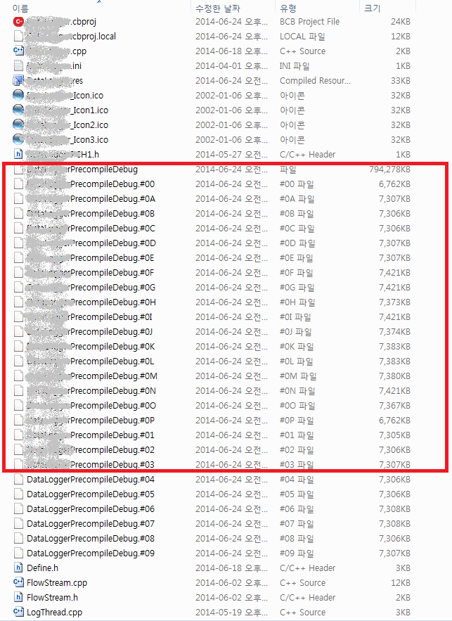 Precompile하여 Cache된 파일들 (800메가가 넘는다.)