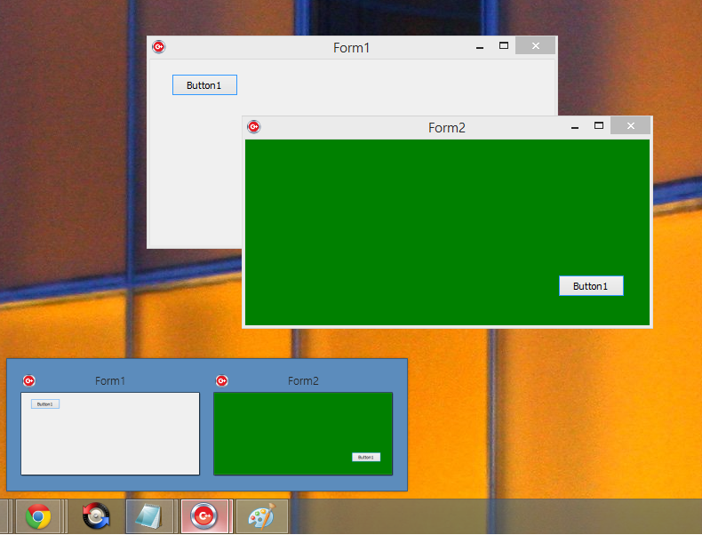 즉 form2를 전체 화면 하게 된 상태에서 form3를 오픈하고 작업 표시줄의 form2를 클릭하게 되면
