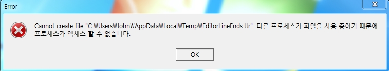 사진에서와 같이 'EditorLineEnds.ttr' 에러가 납니다.