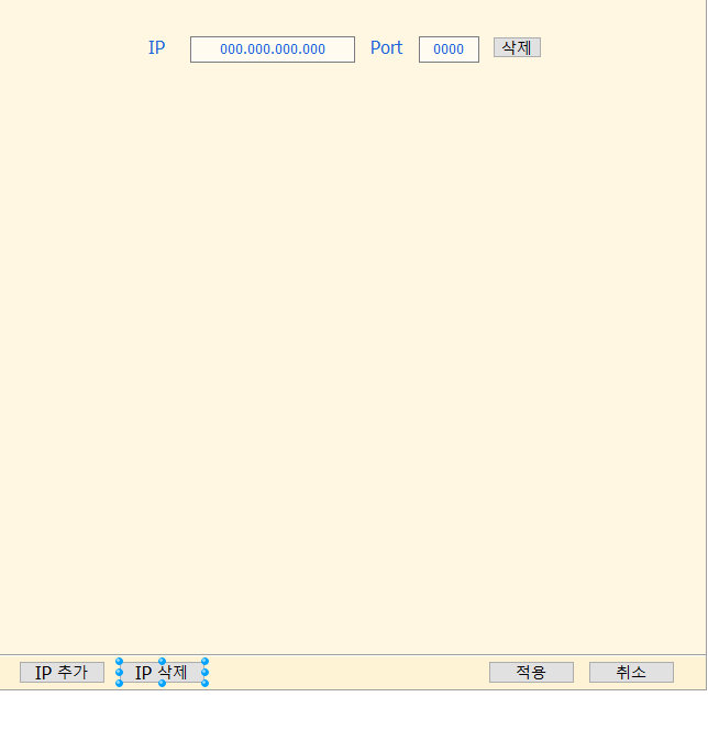 저버튼을 누르면 그림상단에있는 창이 하나가 추가되는겁니다.(아이피,포트,삭제버튼)