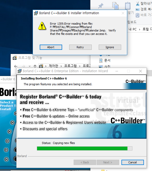 C++빌더 인스톨하는데 에러가 자꾸 나요~~