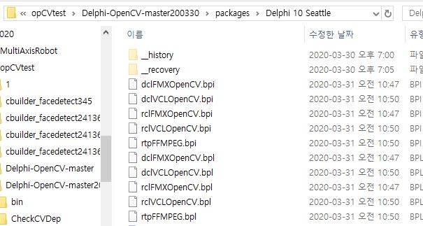 2) dclFMXOpenCV, dclVCLOpenCV, rclFMXOpenCV, rclVCLOpenCV, rtpFFMPEG