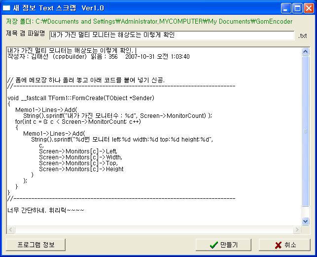 새 Text파일을 만드는 과정과 이를 저장하는 과정은 조금 번거롭습니다. 필자는 수천개의