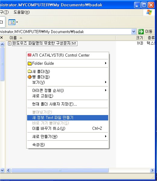(Context Menu)가 나타나는데 여기에 '새 정보 Text 파일 만들기' 메뉴가 뜹니다.