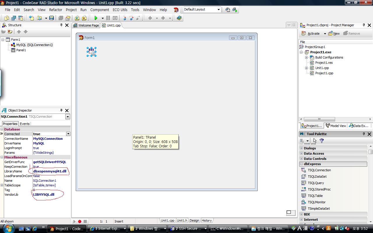 Dbexpress 를 이용해서 libmysql 즉 mysql을 직접연결 하려고 시도해봤습니다.