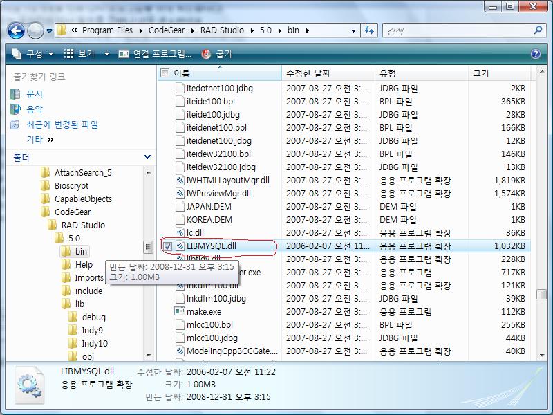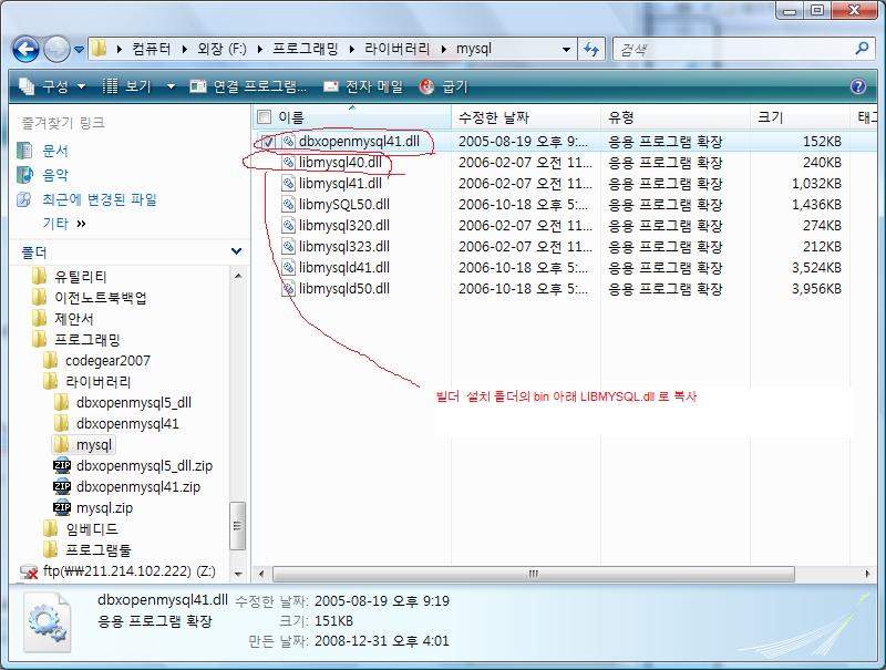 전 4.1 이라 4.1기준으로 libmysql41.dll 을 bin 아래 LIBMYSQL.dll 로 만들어넣었습니다.