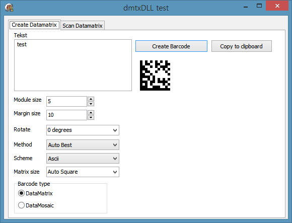 libdmtx library를 이용하여 2d matrix barcode를 만들고 읽는 프로그램 예제입니다.