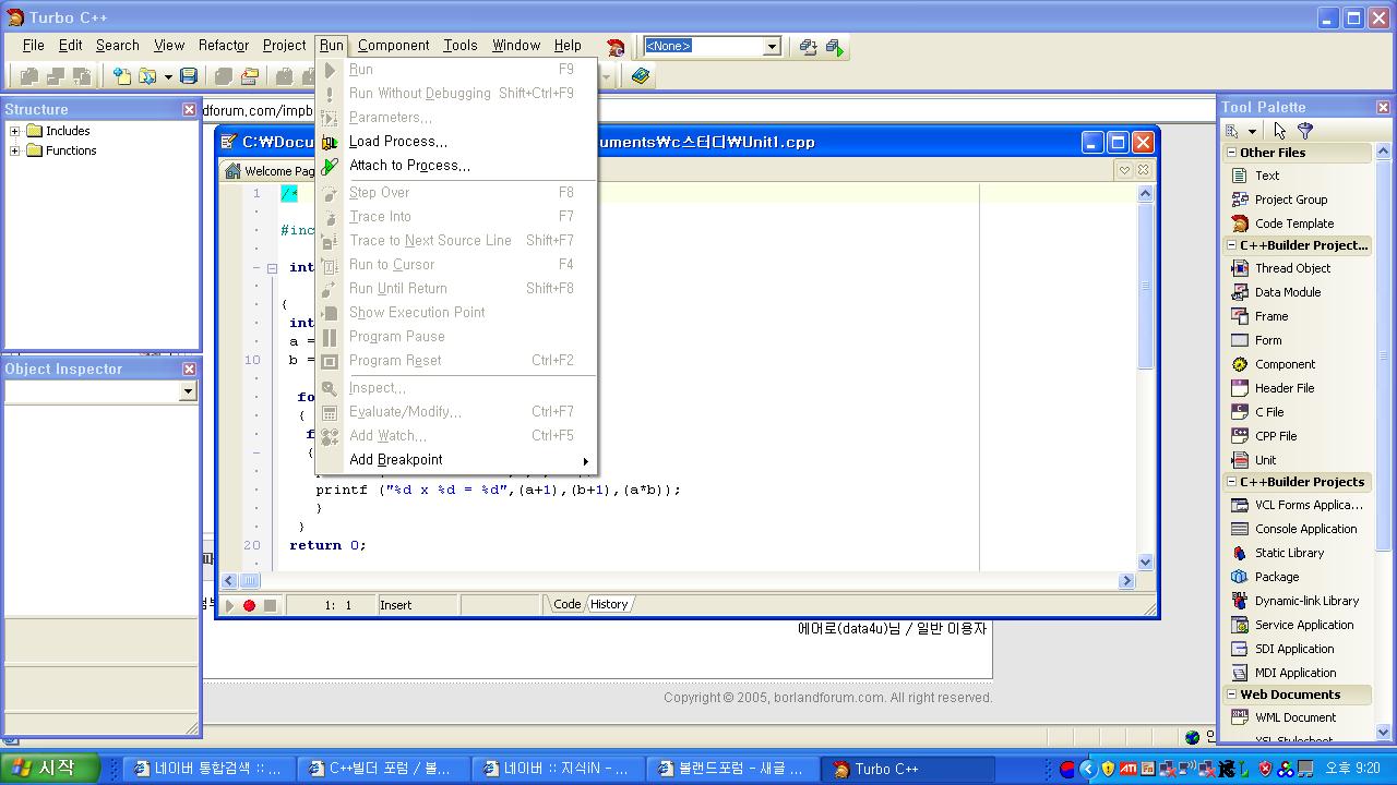 터보c++ 브라우저 용으로다운받아 설치하고 코딩도 했는데 run 이 활성화되지 않네요.