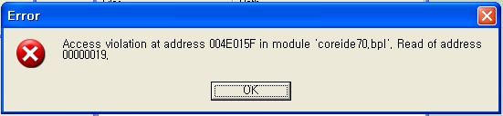 Re:[질문] Access violation at ... 'coreide70.bpl'.Read 에러~~도와주세요~