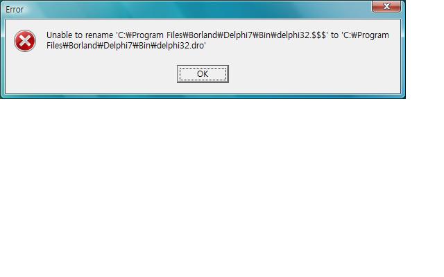 델파이 7을 비스타에서 실행할려고 하니 다음과 같은 오류가 뜹니다.