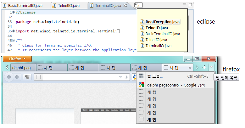 Eclipse 나 Firefox에서 사용하는 것 같은 PageControl Component 없나요?