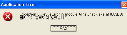 Exception EOleSysError in module AllnsCheck.exe at 0009B201.