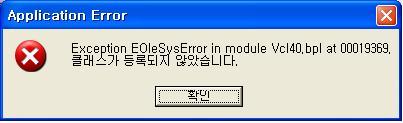 Exception EOleSysError in module Vcl40.bpl at 0019369 클래스가 등록되지 않았습니다.