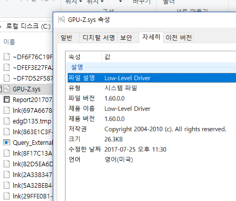 실행파일 안에 GPU-Z.sys라는 커널모드 디바이스 드라이버를 갖고있다가