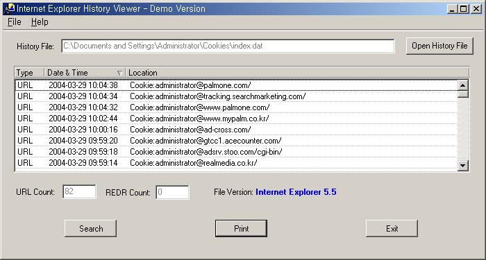 Documents and Settings\Administrator\cookie 디렉토리의 index.dat