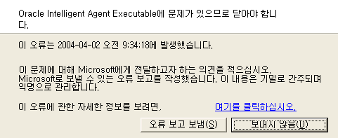 그림에 나온 메세지인데 xp에 오라클 9i 설치후에 컴퓨터 부팅하면 매번 나타납니다.