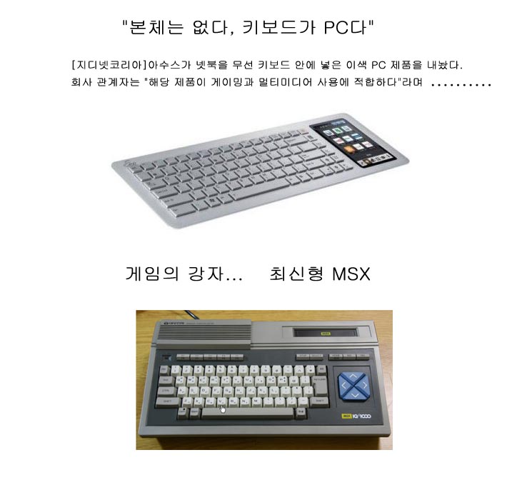 [지디넷코리아]아수스가 넷북을 무선 키보드 안에 넣은 이색 PC 제품을 내놨다.